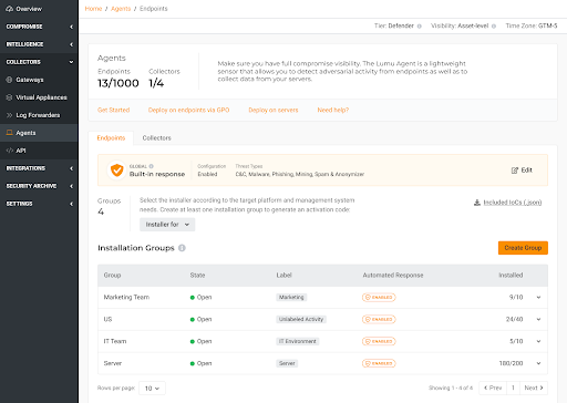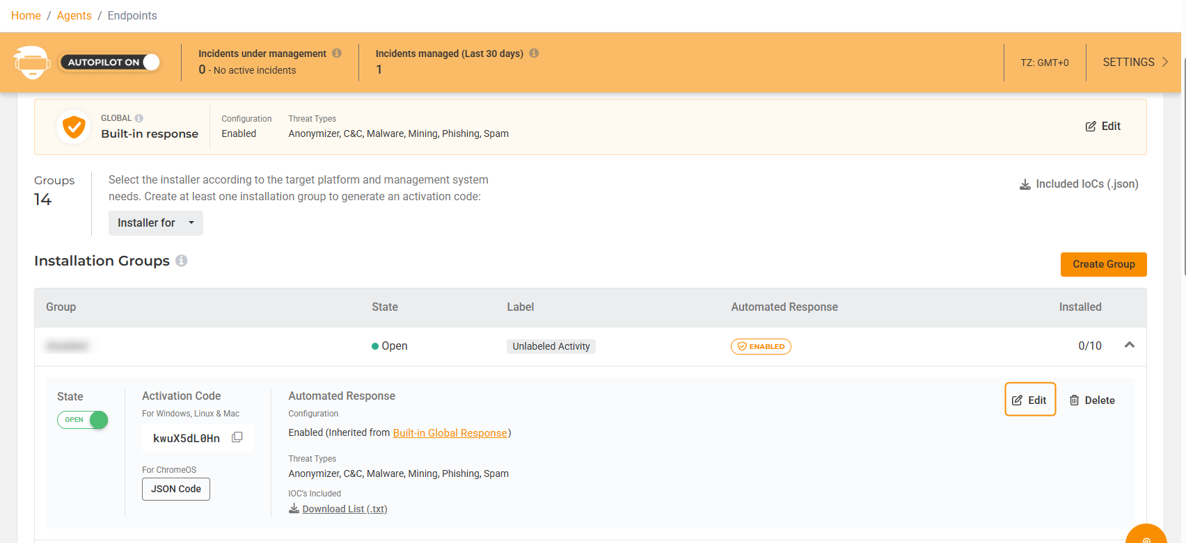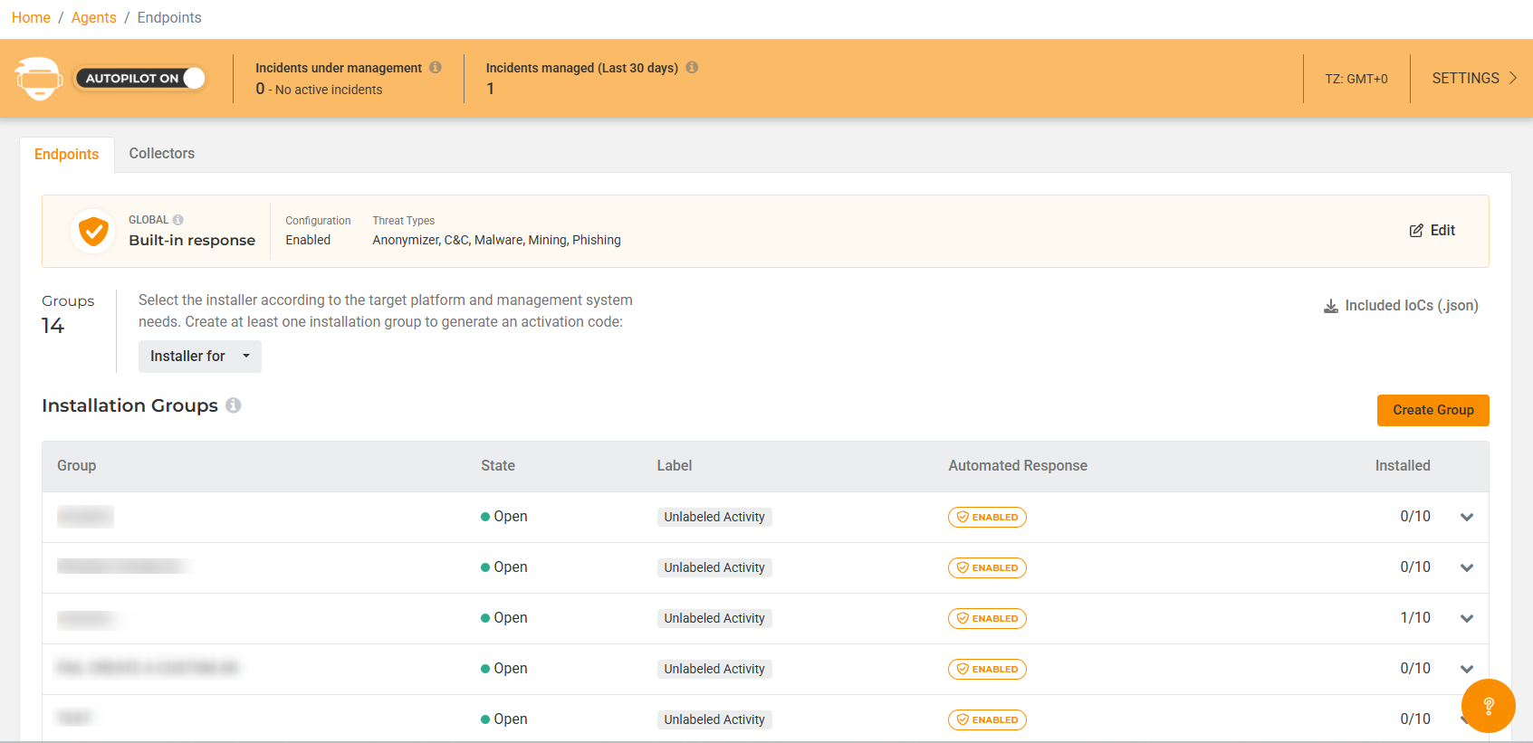 4. Go to Collectors > Agents and you will now see that the Agent Installation Groups have the Automated Response enabled.
