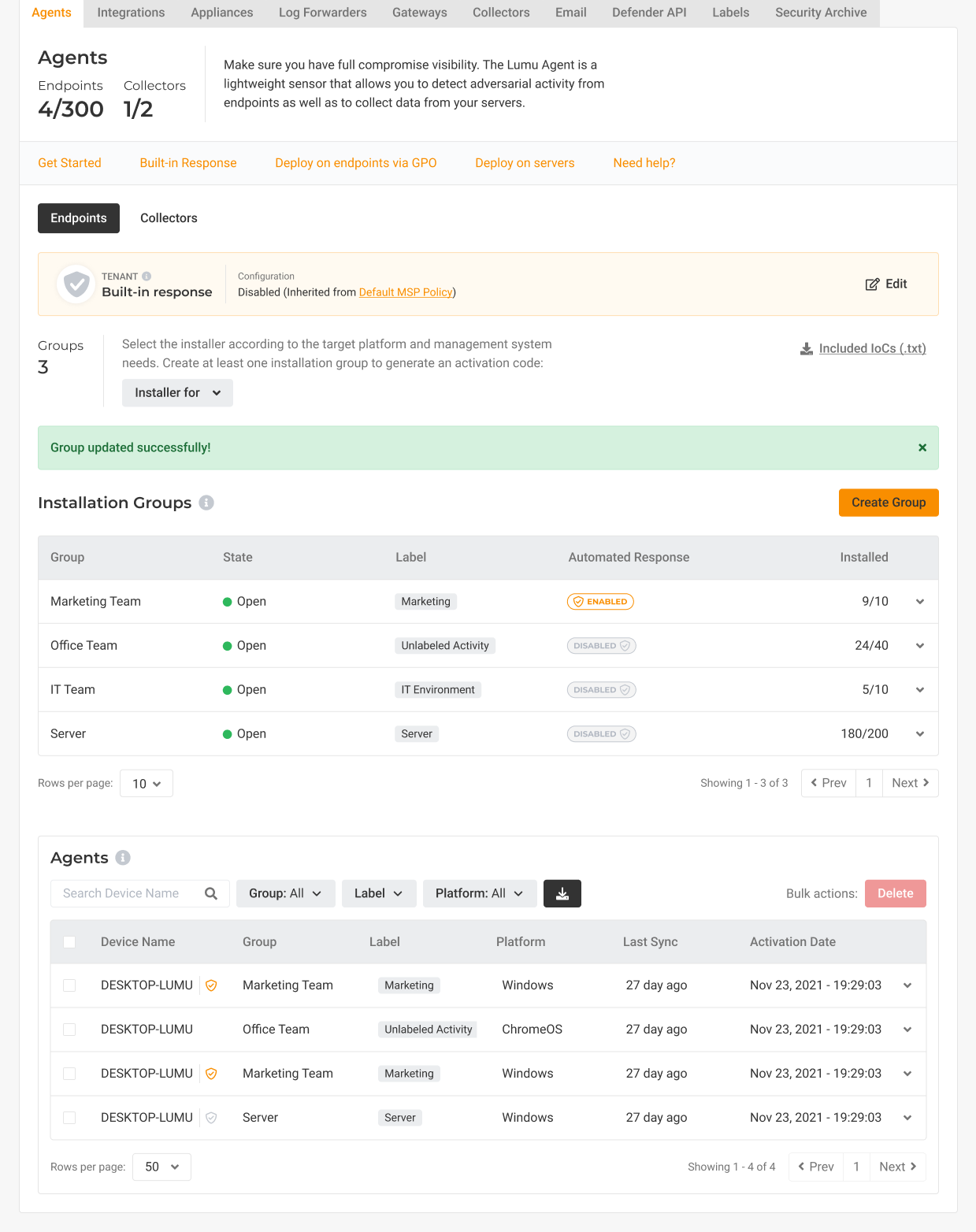 To configure the custom configuration to specific Agent Groups, login to the Lumu MSP Portal and follow these instructions.