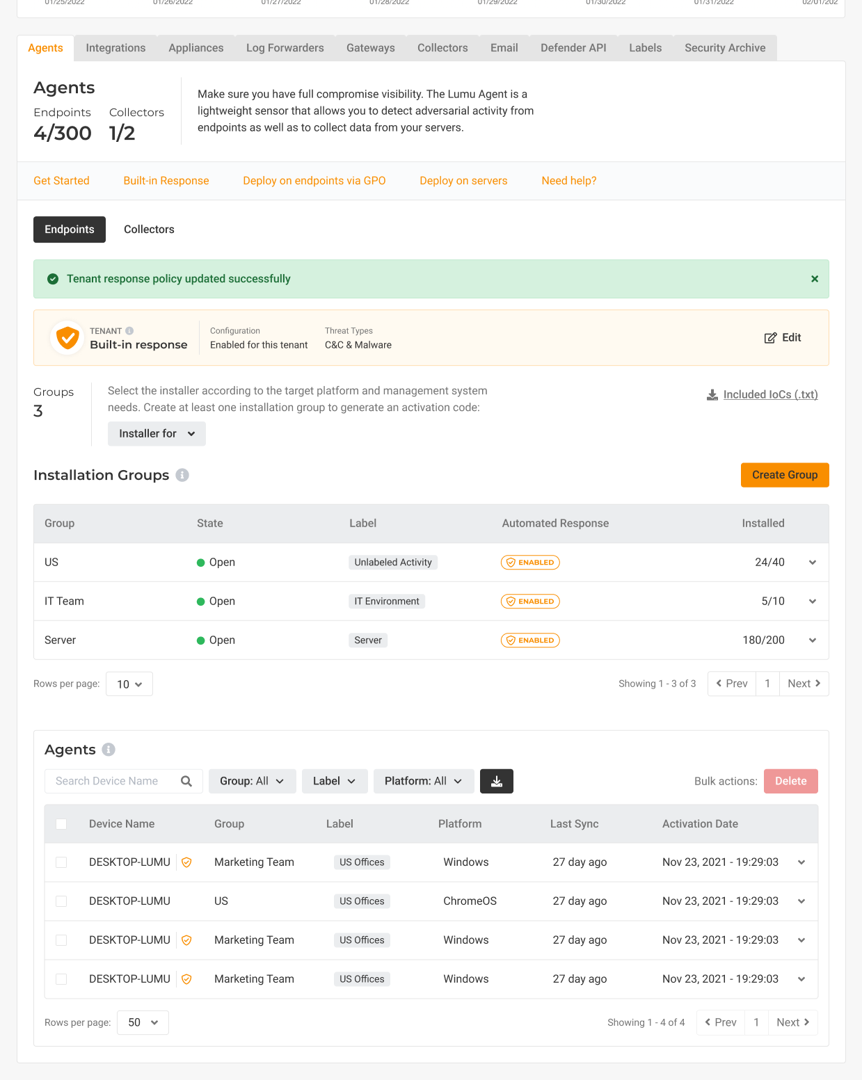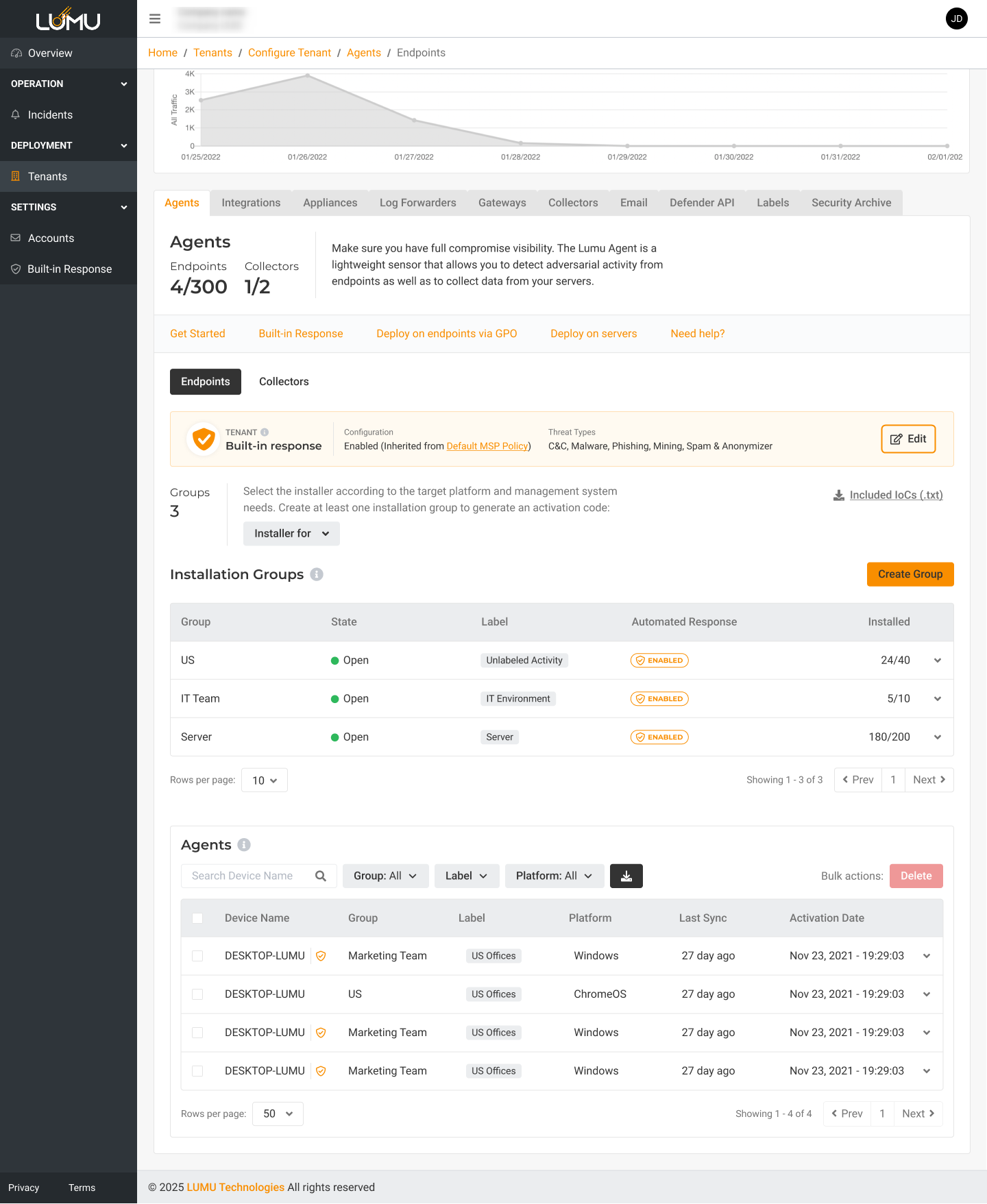 Learn more about Agents in Introduction to Lumu Agents.