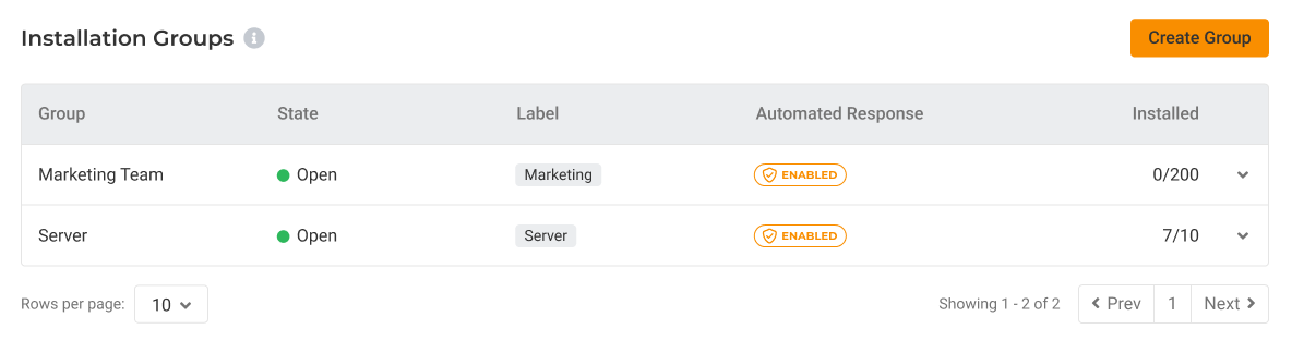 2. Locate the Installation Groups section under the Agents tab. Then, select the group you want to configure and click Edit.