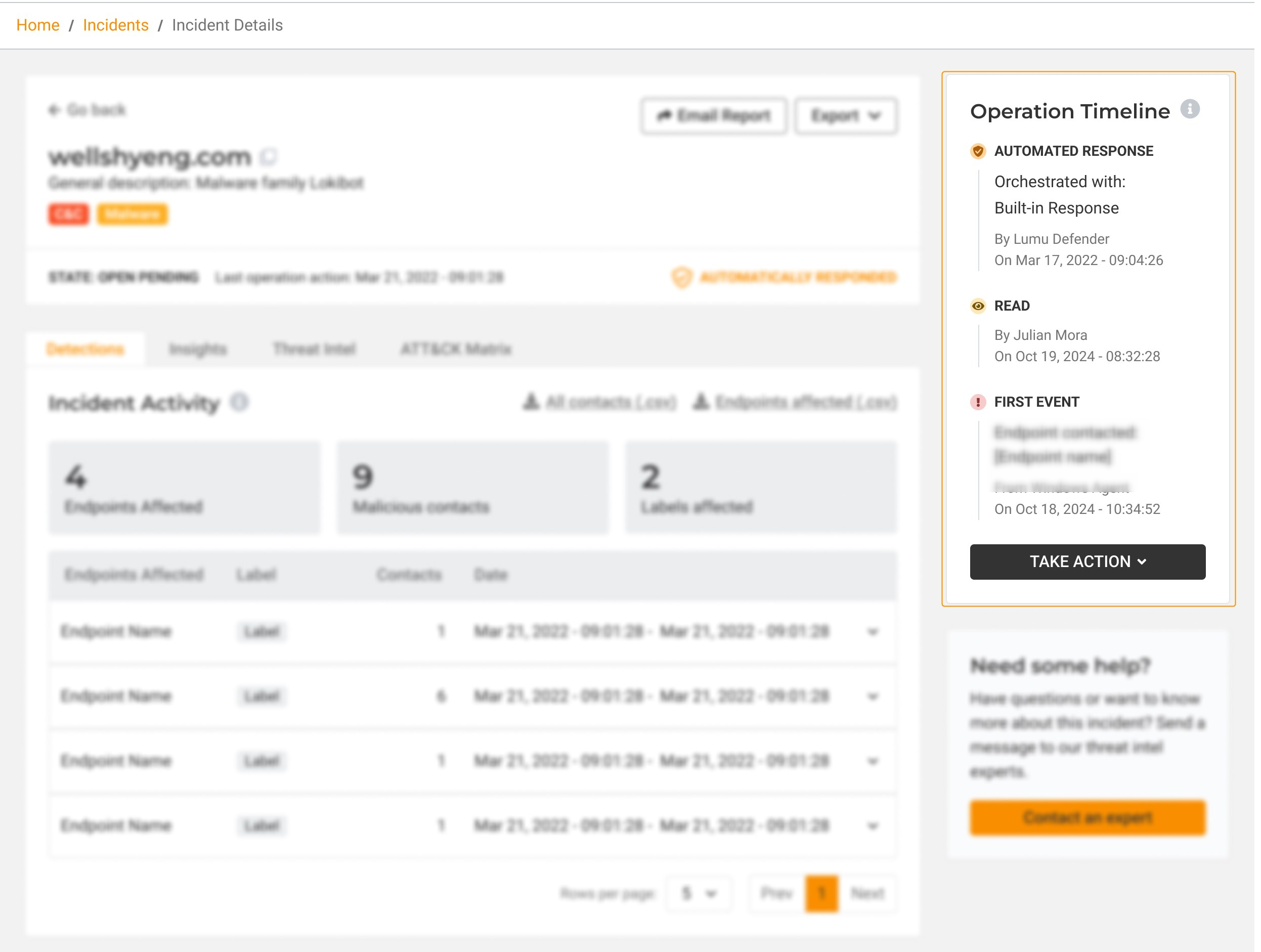 Every incident that has been automatically responded by this feature will look as follows