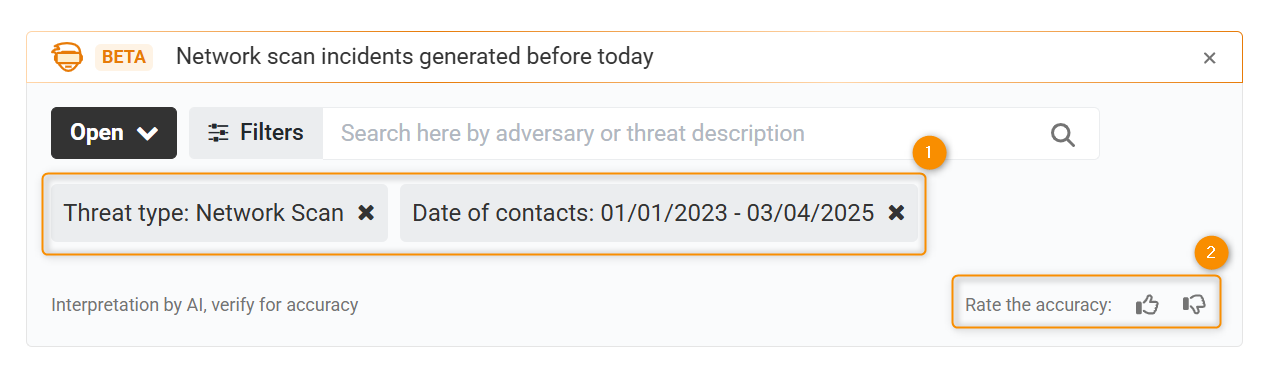 If the results match your query, we encourage you to rate the filter’s accuracy positively(2). Likewise, if it misinterpreted your request, please rate it negatively so we can improve it based on your feedback.