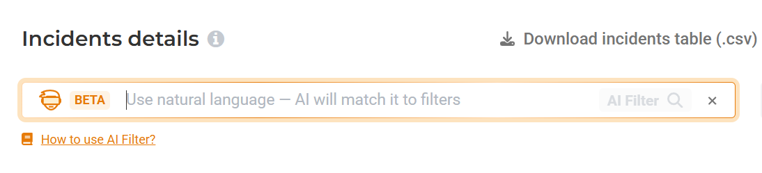 By clicking on it, you will turn on AI Filter to query for incidents using natural language.
