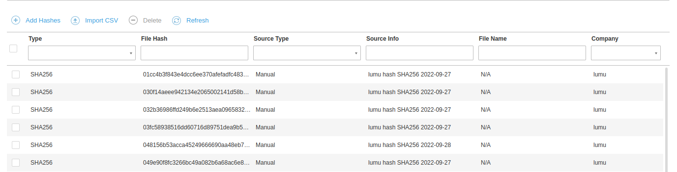 This example will push hashes under the BitDefender list Lumu xxx.