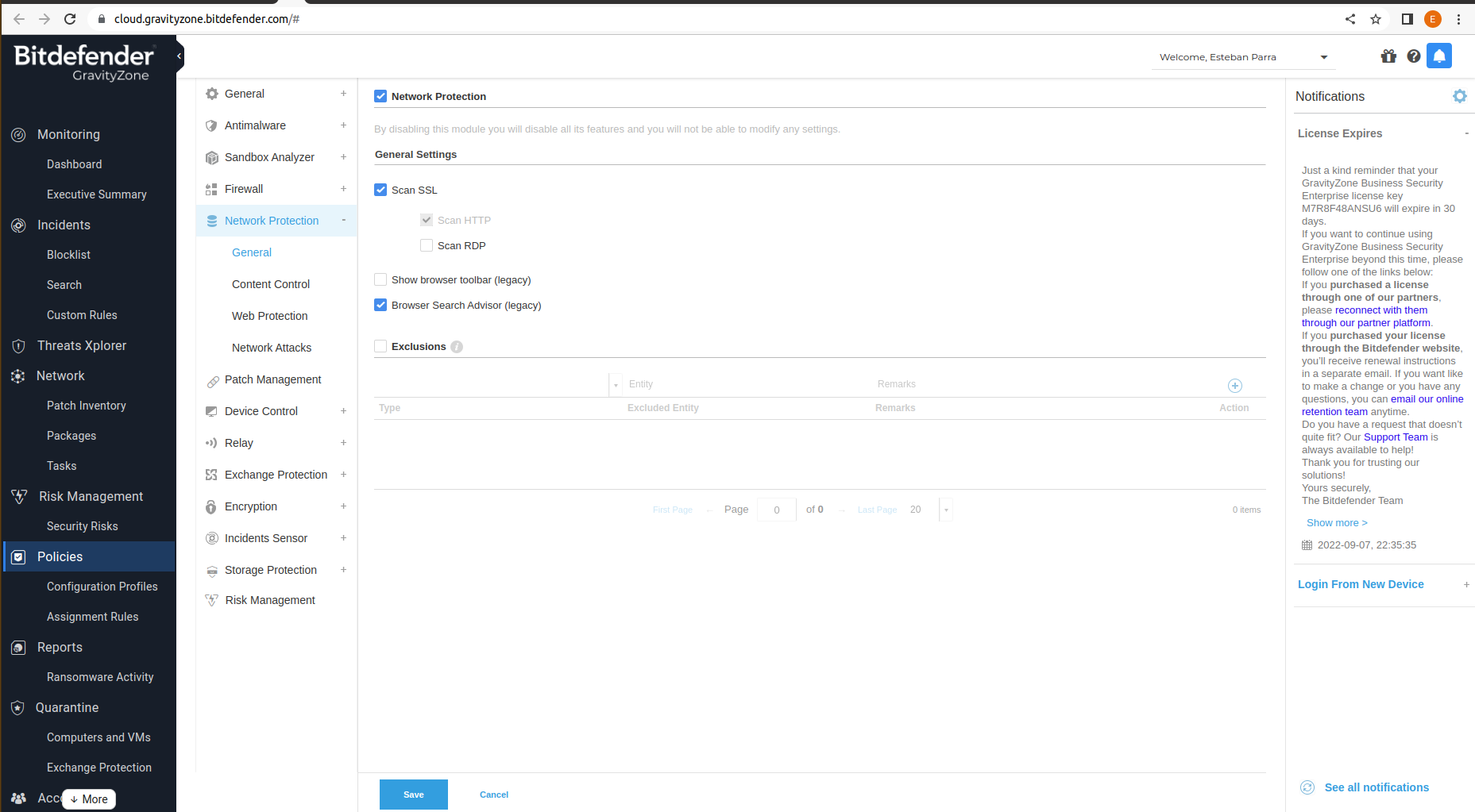 BitDefender policy name, it must exist in Bitdefender platform to export configuration. |
