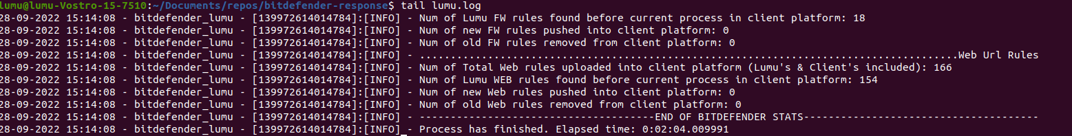 In the package, you will find the script required to run the integration. To use the script, you must locate yourself on the path selected for deployment (<bitdefender_lumu_root>). Specific directions are included in the next sections.