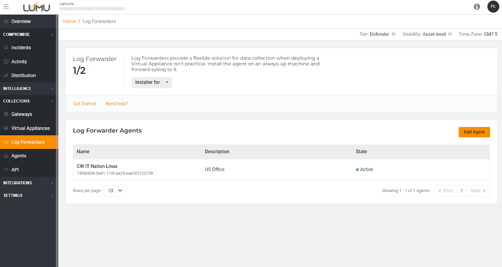 The Lumu Agent is an endpoint software program provided by Lumu installed on a user's machine and enables the monitoring of remote devices no matter where they are. Lumu Agents run silently while intentionally collecting network metadata to be analyzed by Lumu to measure compromise in real time. For more information, consult our Lumu Agent documentation