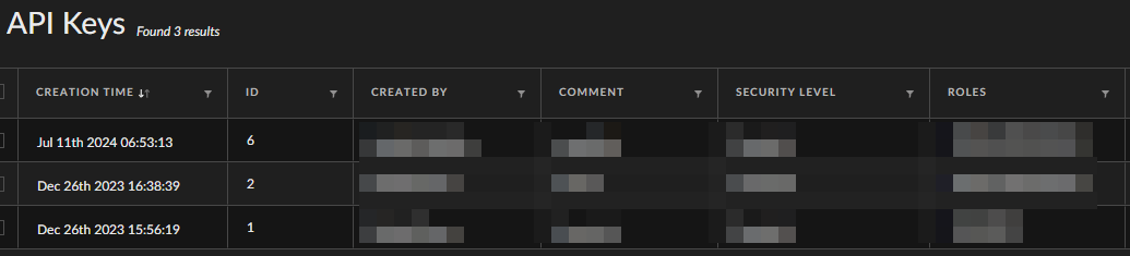 From the API Keys window, extract the ID number of the created key. This will be needed later.