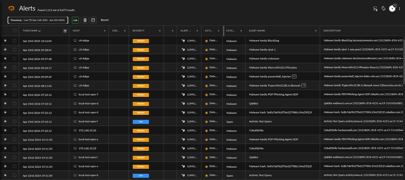 After running the script, you will see the Lumu-related events (alerts) in the Alerts Table section.