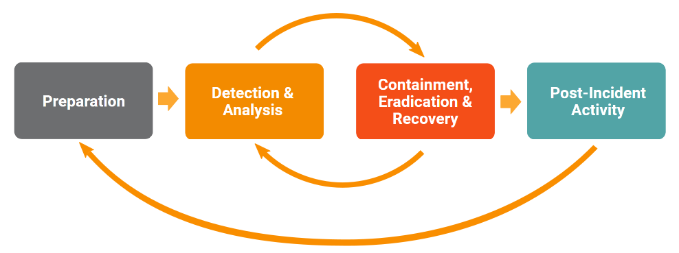 The Lumu Data Exfiltration Incident Response Playbook is based on the Computer Security Incident Handling Guide by the National Institute of Standards and Technology (NIST). According to NIST special publication 800-61, the incident response life cycle has four main phases, as described in the following illustration.