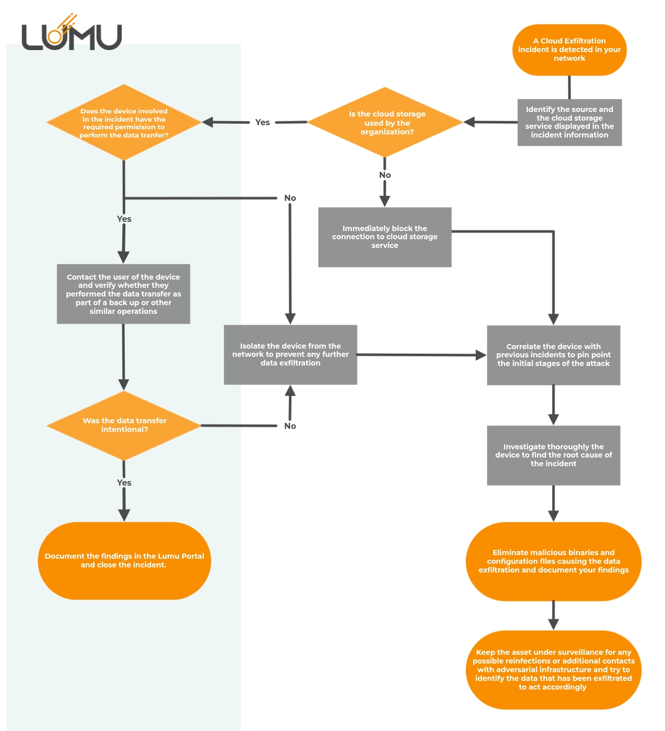 This document contains guidelines for Data Exfiltration incident response using Lumu. Consider this playbook as a guideline to improve the effectiveness of the incident response and adapt it according to your specific requirements.