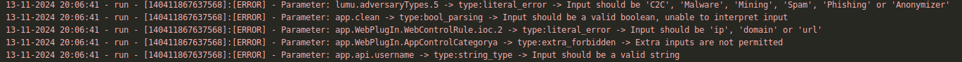 This means that some parameters in your configuration files have been entered incorrectly. Read the information the error messages provide and fix the affected parameters.
