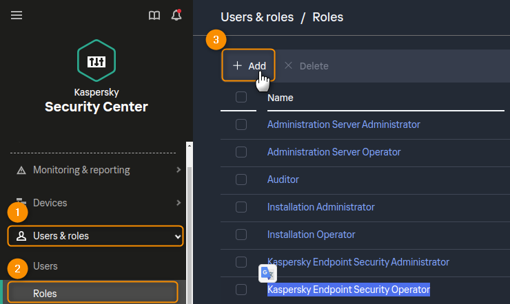 You can use either the Kaspersky Endpoint Security Operator or the Main Operator roles as a reference to create your new role.