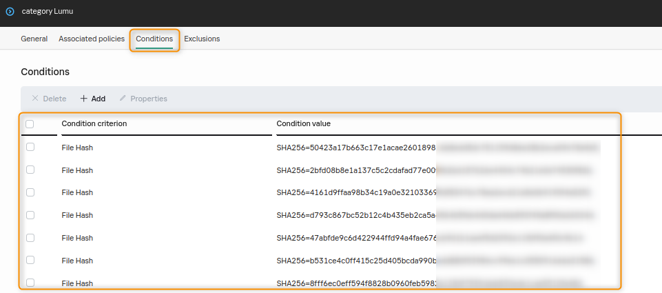 An Application Category Entry to feed SHA256 hashes.