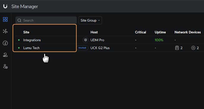 1. Open your Web browser and access the Unifi Site Manager. Log in if the Site Manager requests it.2. In the Site Manager window, look for the site where your Unifi devices are attached to, then, click on the site.3. Now, you are on the Network application.