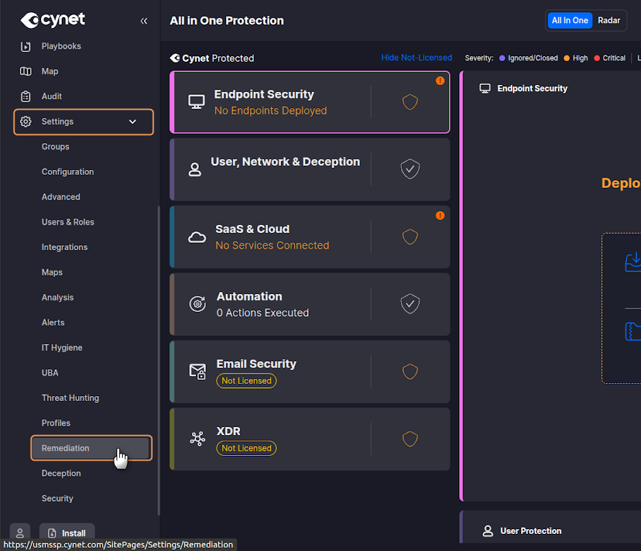 1. Expand the left navigation menu. Click on the Remediation menu under the Settings section