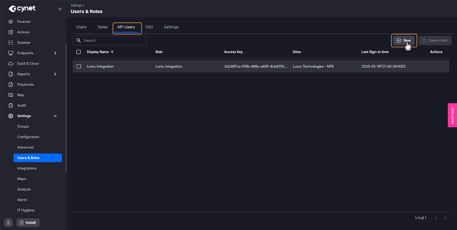 2. In the User & Roles window, click on the API Users tab, then click on the New button.