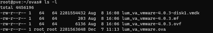 - qm importovf <VMID> lum_va_vmware-4.0.3.ovf <LOCAL_STORAGE> --format qcow2