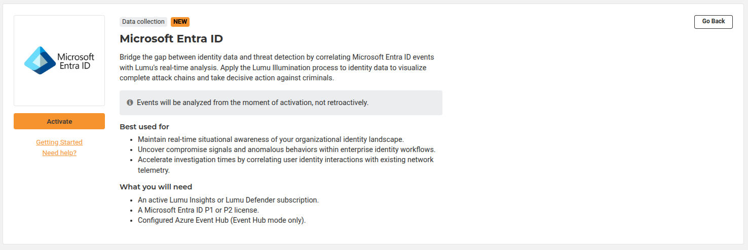 Do not delete the Microsoft Entra ID Enterprise Application created by Lumu from the Azure Portal. This application serves a vital role in maintaining the functionality of the integration. Deletion of the application will cause the integration to stop working.