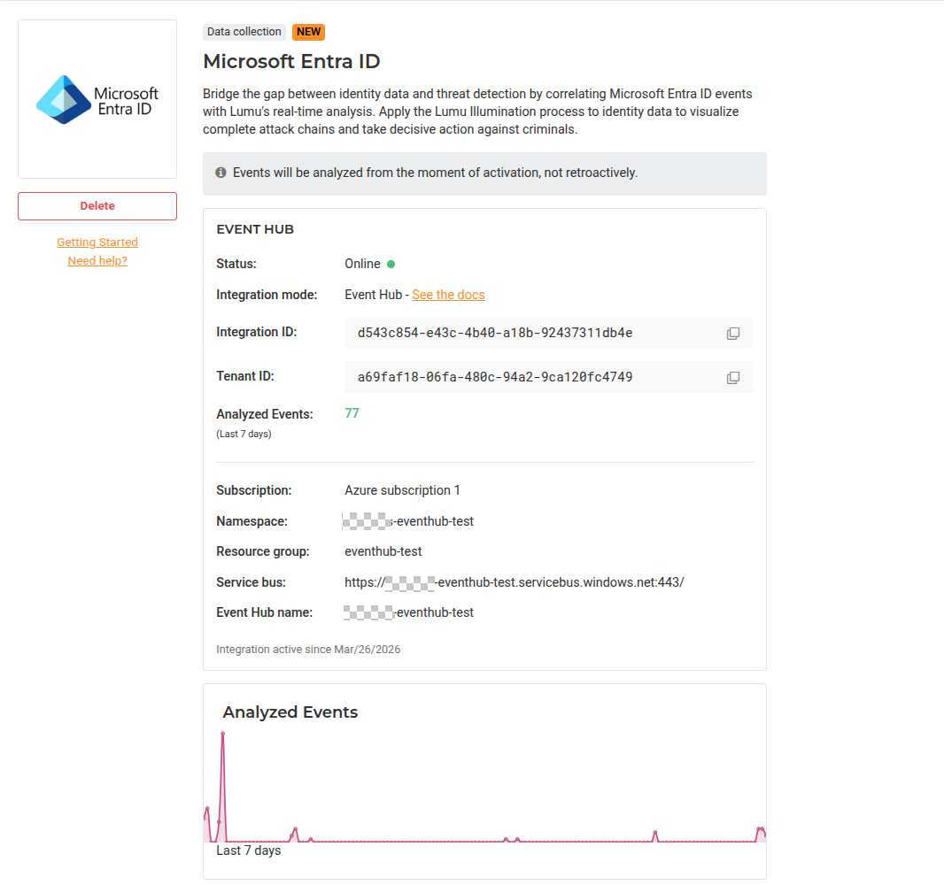 8. Once you activate the integration, the Lumu Portal will display the details of the newly created integration.