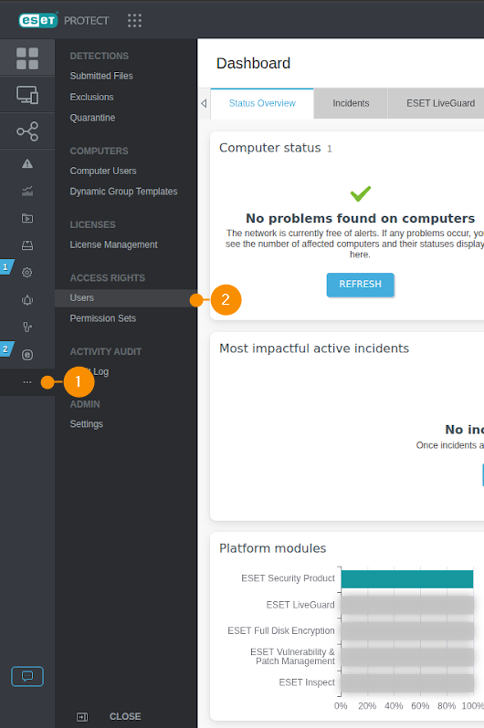 Log in to your ESET portal with an administrator user and follow these steps: