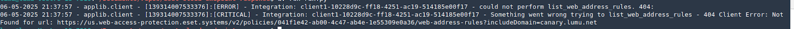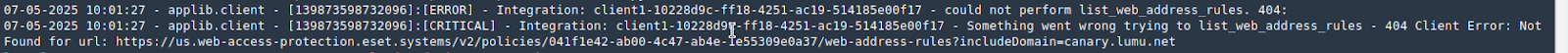 Check if you created the URL group with the Lumu canary indicator (canary.lumu.net) in the Web Control feature of your windows policy if you get a log message like this.