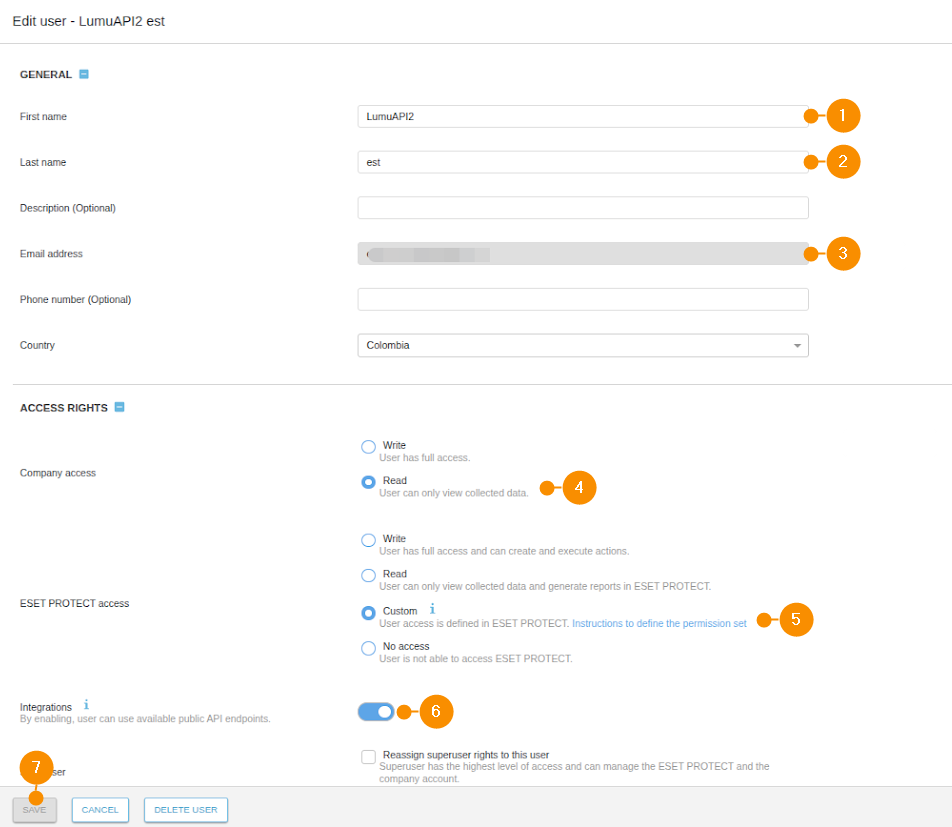 Creating your integration user depends on the portal you use for managing your ESET deployments and licensing. You have the following options: