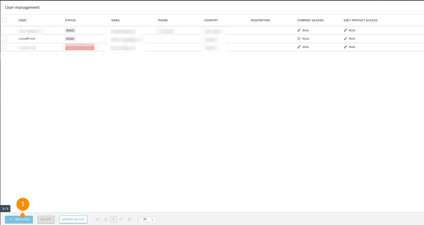 2. Click on New user (1) located at the bottom of the User management window.