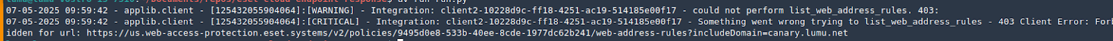 Lumu’s custom response integration with ESET PROTECT Cloud uses the ESET Connect API to manage a URL group within the Web Access Protection rules in Windows Workstation policies. It automatically updates this group with URLs identified by Lumu as confirmed risks, helping to prevent further communication with those endpoints.