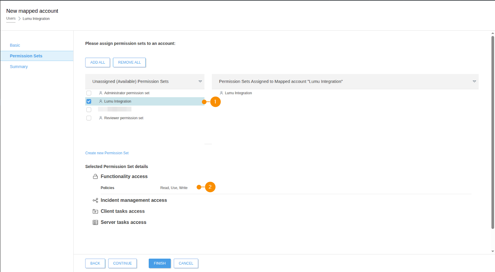 If you did not create a permission set, select one that has the Policies functionality with the Read, Use, and Write privileges.