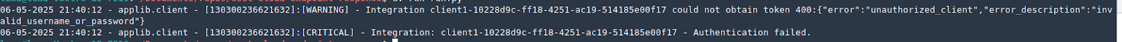 Check your integration user username and password if you get a log message like this.
