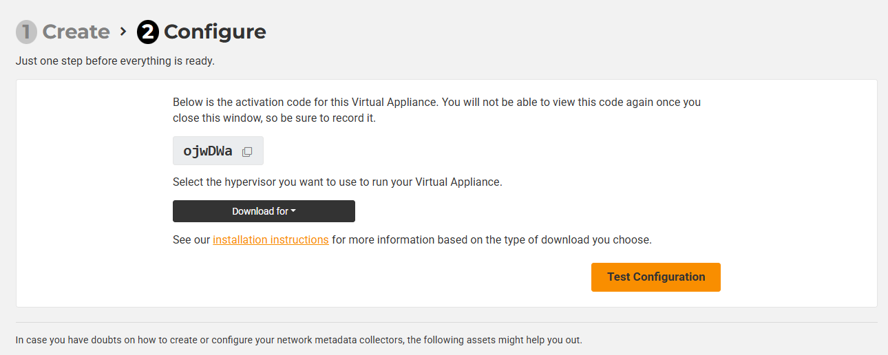 Once done, you will be taken to the following screen where you will see your VA’s activation code alongside some resources to assist you in deploying the VA.