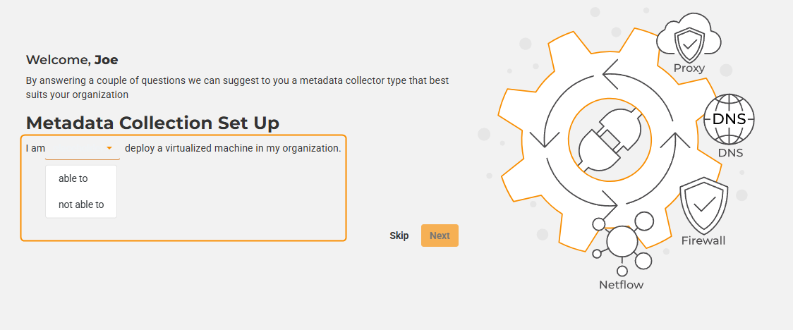 the appropriate collectors for your network. You will be first met with this screen where you must select whether you’re capable of deploying a virtual appliance.