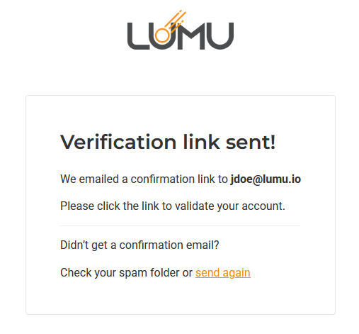 3. You will see the following message letting you know that a confirmation link has been sent to your email address.