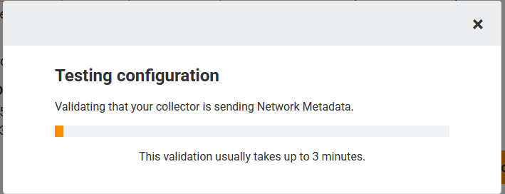 A progress bar will pop up showing you that Lumu is validating your configuration. Wait for it to complete to be certain that you are properly sending traffic to Lumu.
