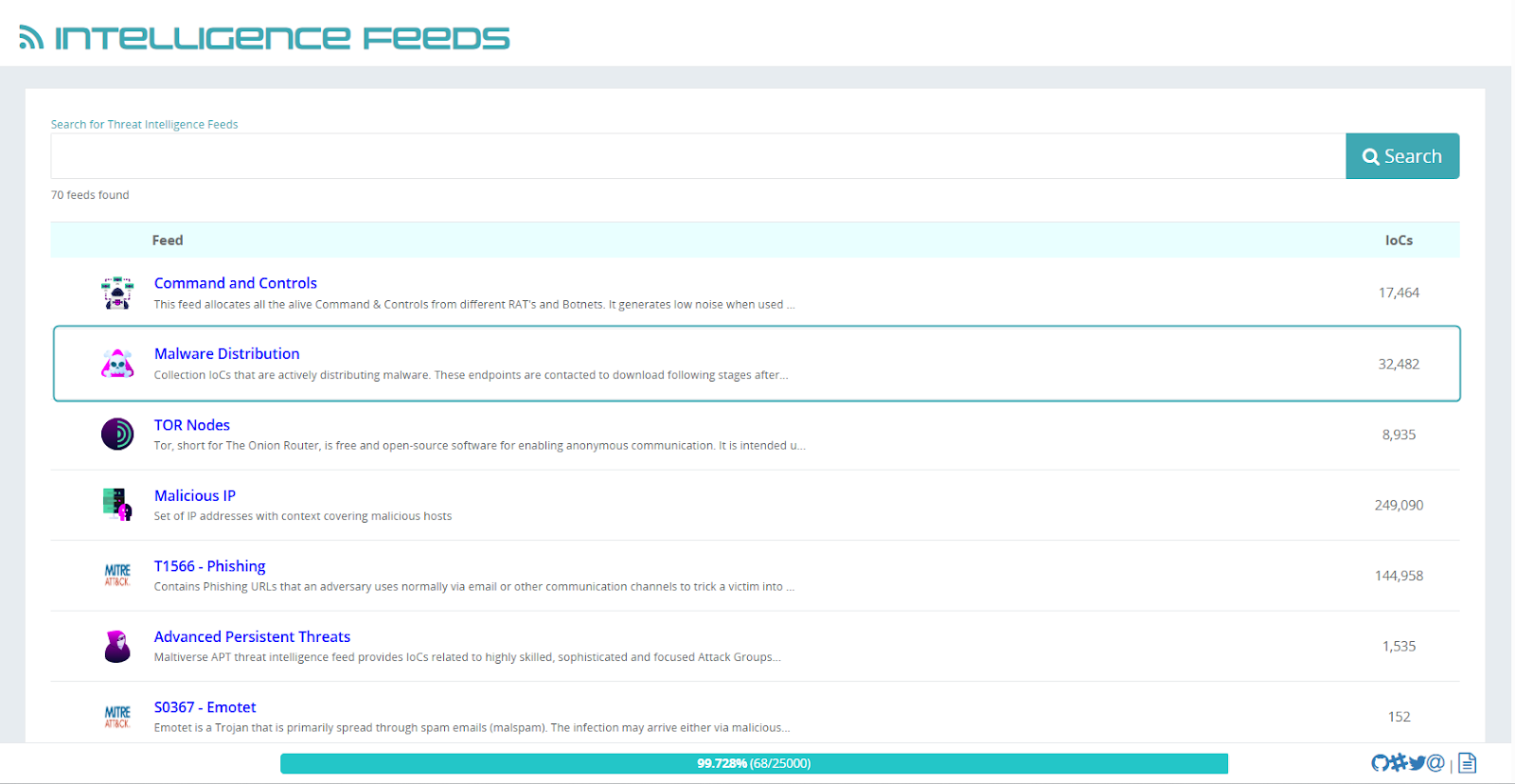 You can inspect and select Threat Feeds from the Maltiverse Portal.