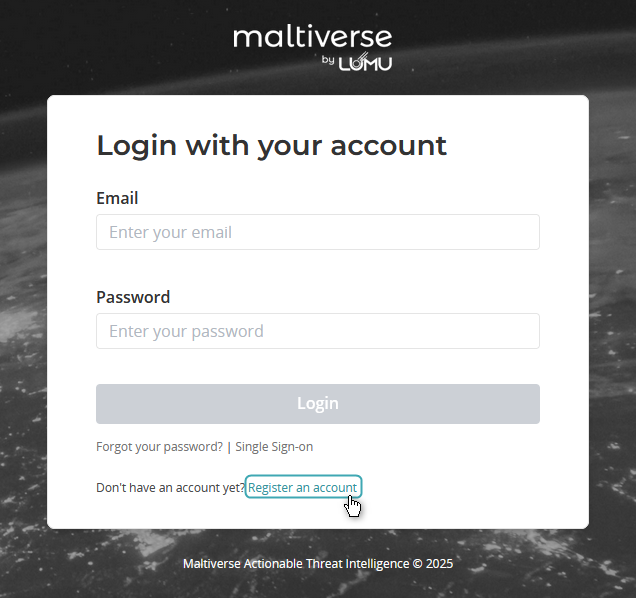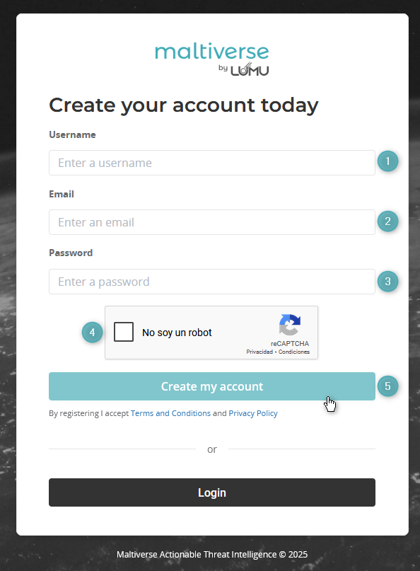 To start using Maltiverse, you must create an account. This is a very simple process and you will be set in a few minutes.