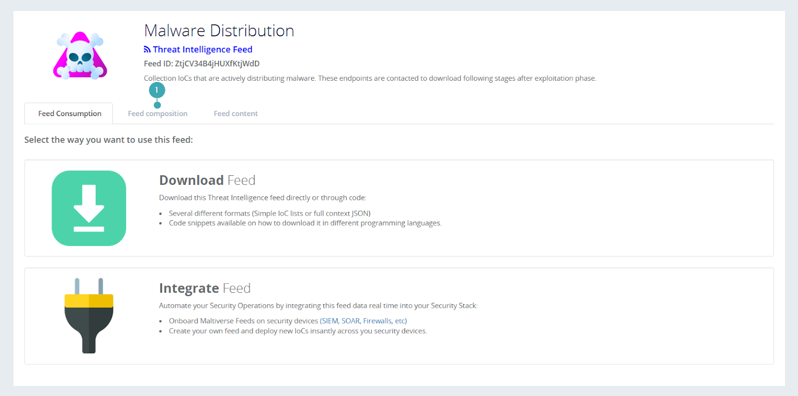 3. To review the IoCs information of the selected feed, click on Feed Composition (1).