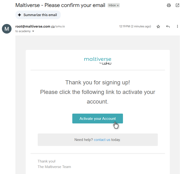 This will log you into the Maltiverse Portal and you will be notified about an account confirmation email.