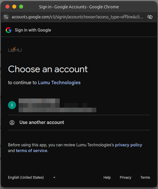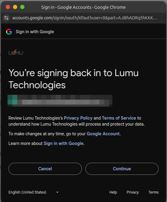 6. You will be asked to confirm your Google Workspace account. Ensure you are using the appropriate account. Then, click Continue.