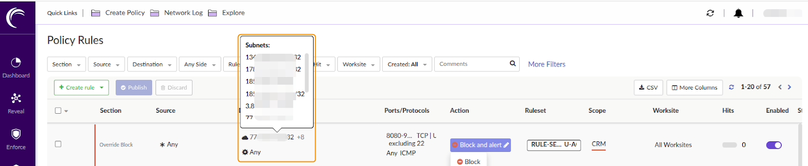 You must create a policy rule linked to a unique ruleset for the integration. To do so, log in to your Guardicore console and follow these steps: