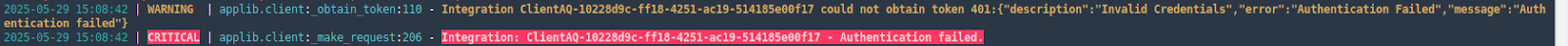It means you are using the wrong key parameters or values. Review your configuration files and run the integration again.