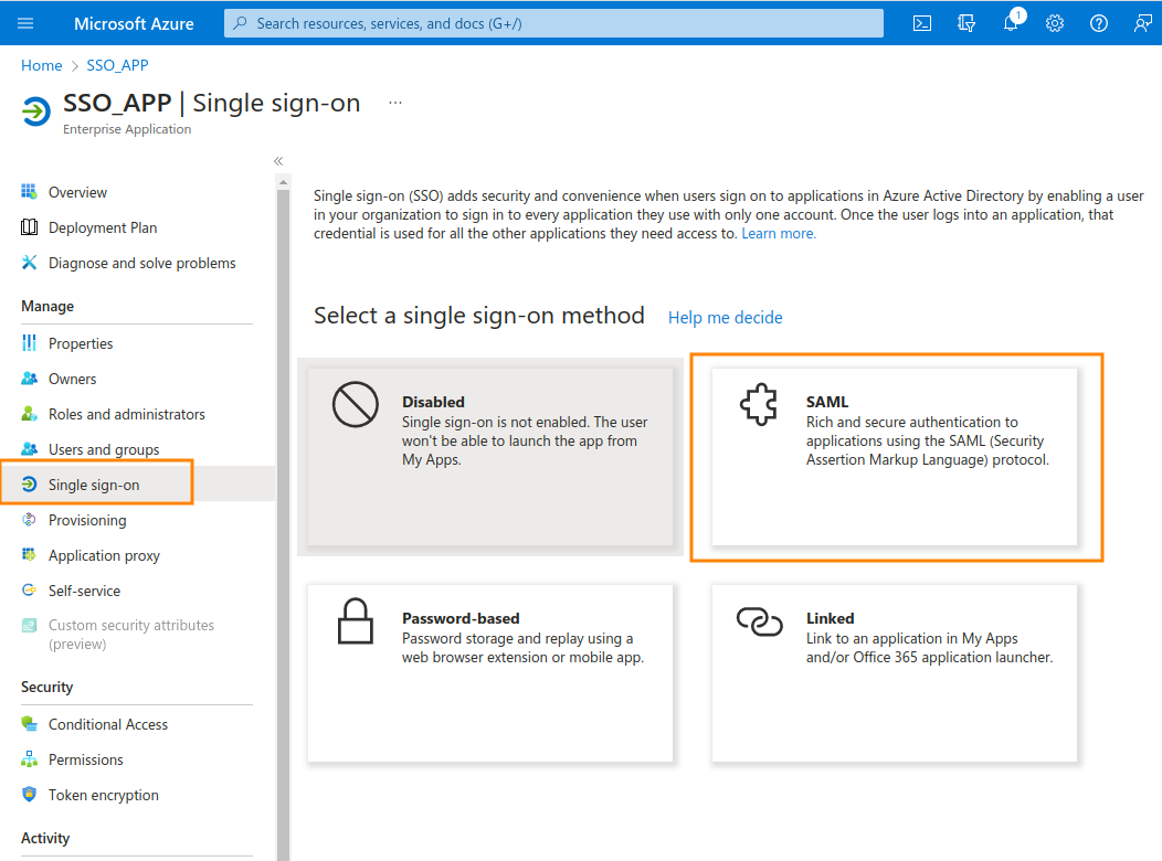7. Go to Single sign-on and click on SAML.