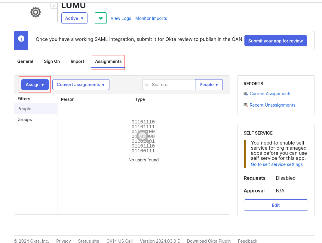 9. Go to Assignments and assign the app to the user you created.