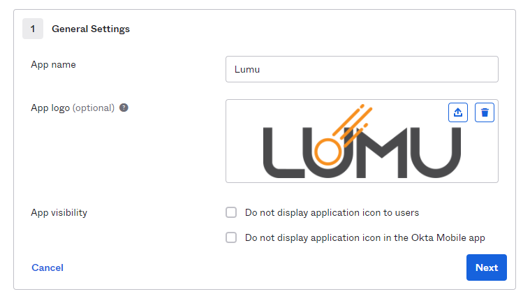 3. Use the provided options to select an adequate name and optionally upload a picture to update the application logo. Read the provided instructions and requirements carefully.
