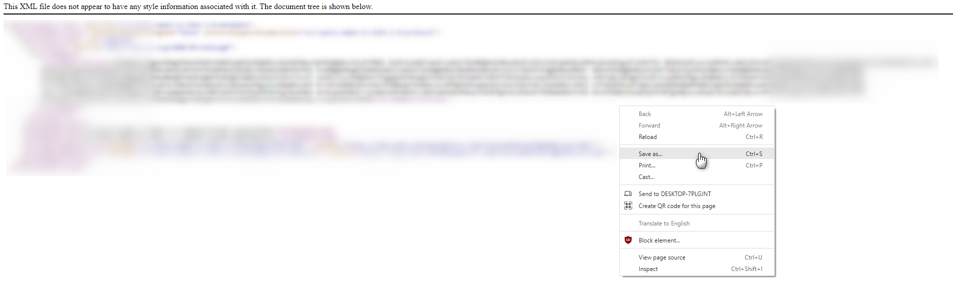 7. This will display the IdP Metadata in a separate window. Using the “Save As” option, store it as a .xml file.