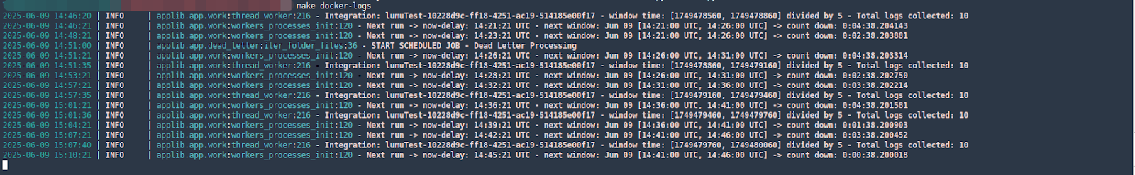 To streamline the deployment process, Lumu introduced the Makefile model integration that allows you to easily deploy integrations as a Docker container. To deploy the integration, locate yourself in the <app_lumu_root> folder, and run the following command: