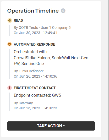 On the right, you will see the Operation Timeline , detailing the actions that have been taken by your organization regarding a specific incident in chronological order, with the most recent interaction at the top..