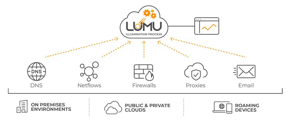Lumu provides the ability to illuminate the blind spots in your network by providing coverage of your entire infrastructure, namely on-premises, public and private clouds, and roaming devices.