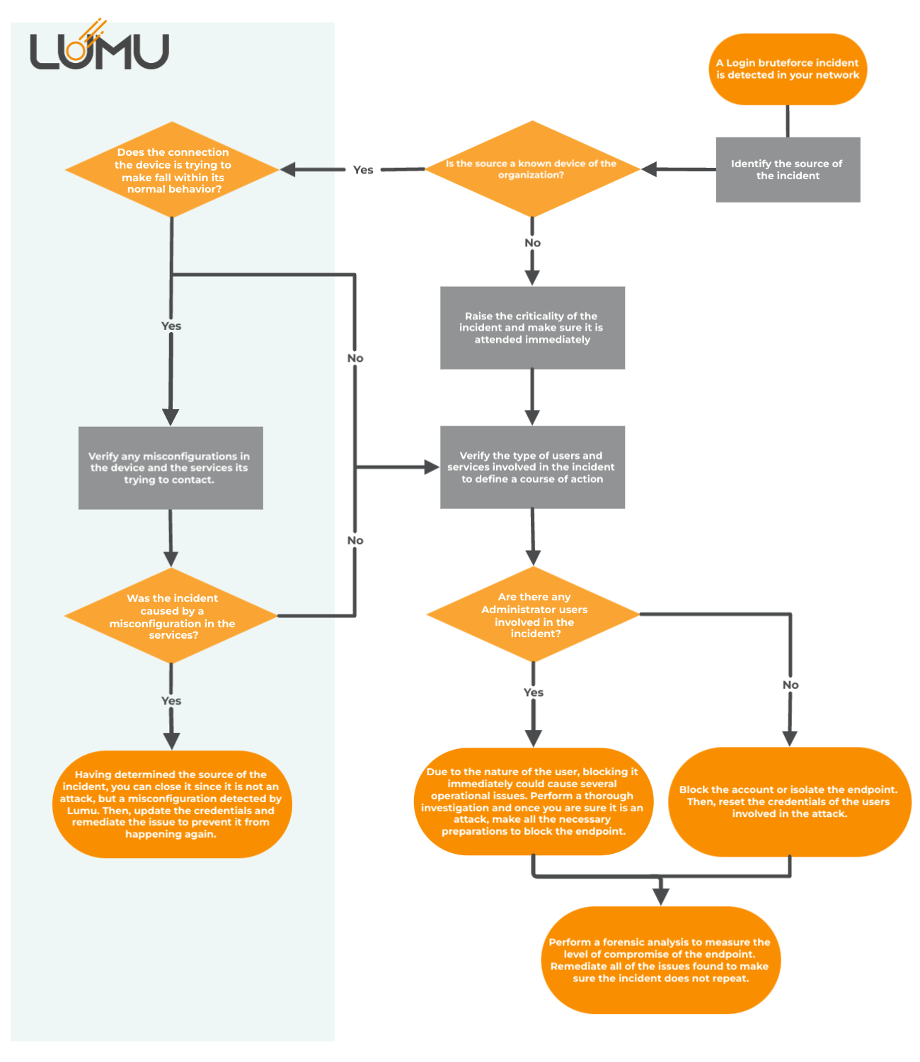 This document contains guidelines for Login brute force incident response using Lumu. Consider this playbook as a guideline to improve the effectiveness of the incident response and adapt it according to your specific requirements.
